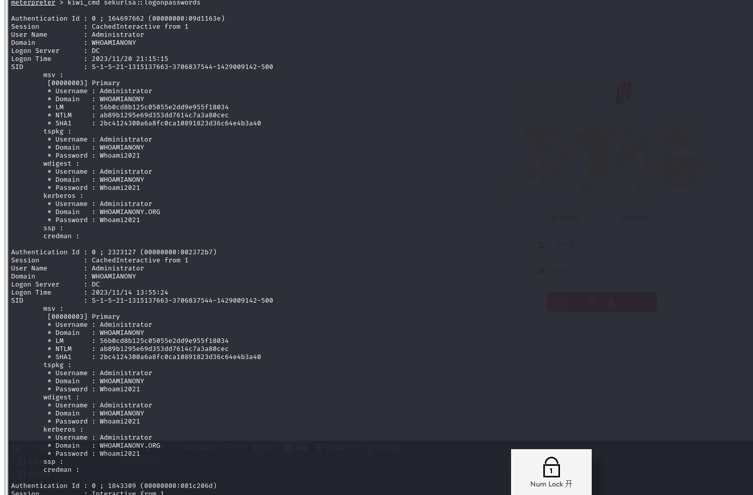 kiwi_cmd sekurlsa::logonpasswords#读取域管理员账号和密码